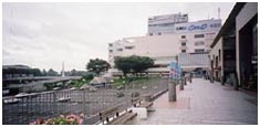 中央通交差点から見る自由通路出口・キュート敷地。 |