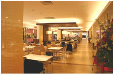1階フードコート「Q`t Kitchen」ファサード(内装デザインは丹青社によるものである) |